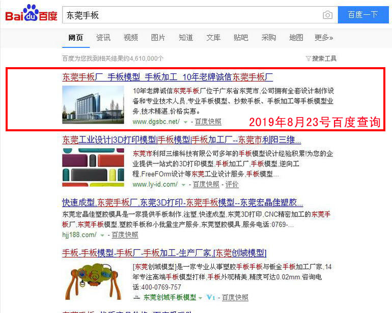 手板廠 百度(PC)自然排名第1名